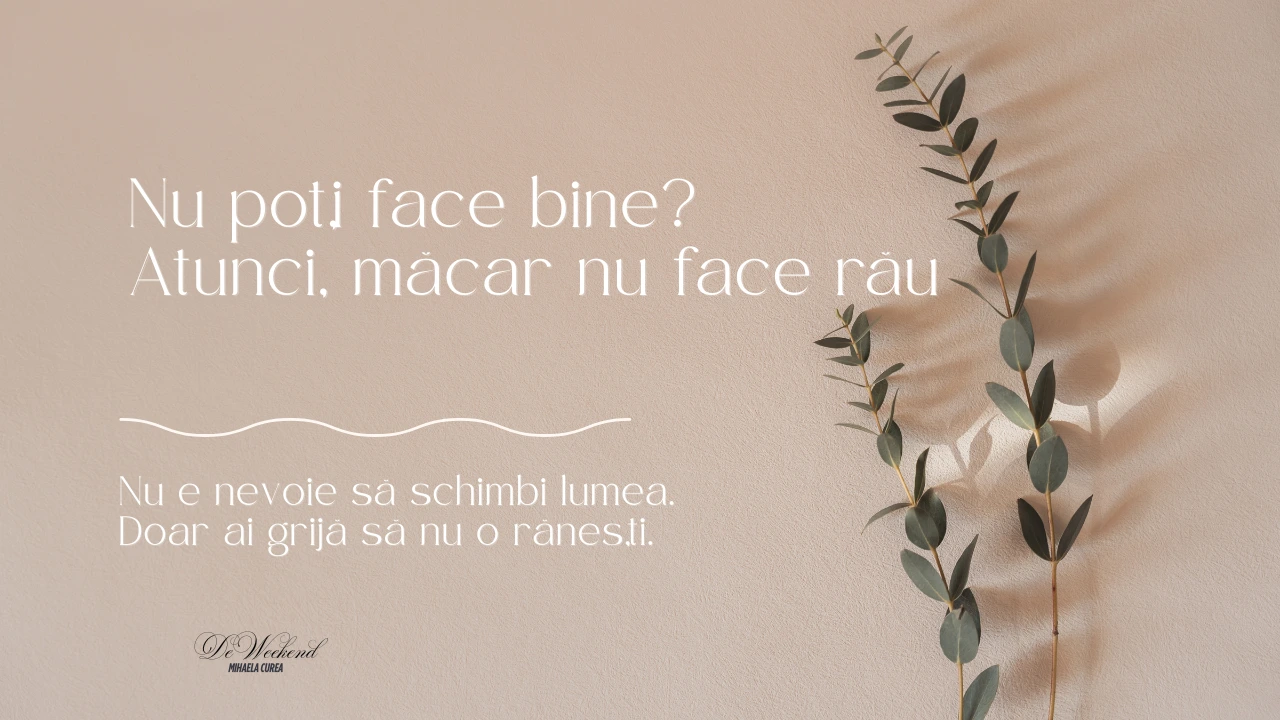 Nu poți face bine? Măcar nu face rău. Trăim într-o lume în care ni se cere constant să „facem bine”, să fim utili, implicați, generoși. Dar ce se întâmplă când nu putem? Când suntem obosiți, goi sau, pur și simplu, fără resurse? Poate că, atunci, adevărata formă de bine este să alegem să nu facem rău.